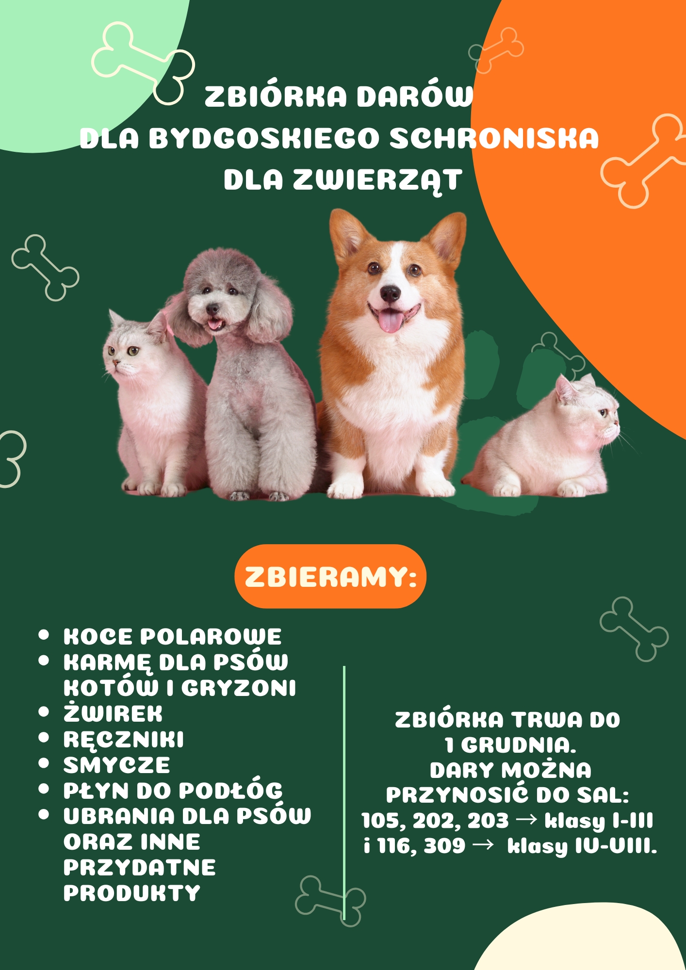 Serdecznie zapraszamy całą społeczność szkolną do udziału w zbiórce darów dla zwierząt ze schroniska!